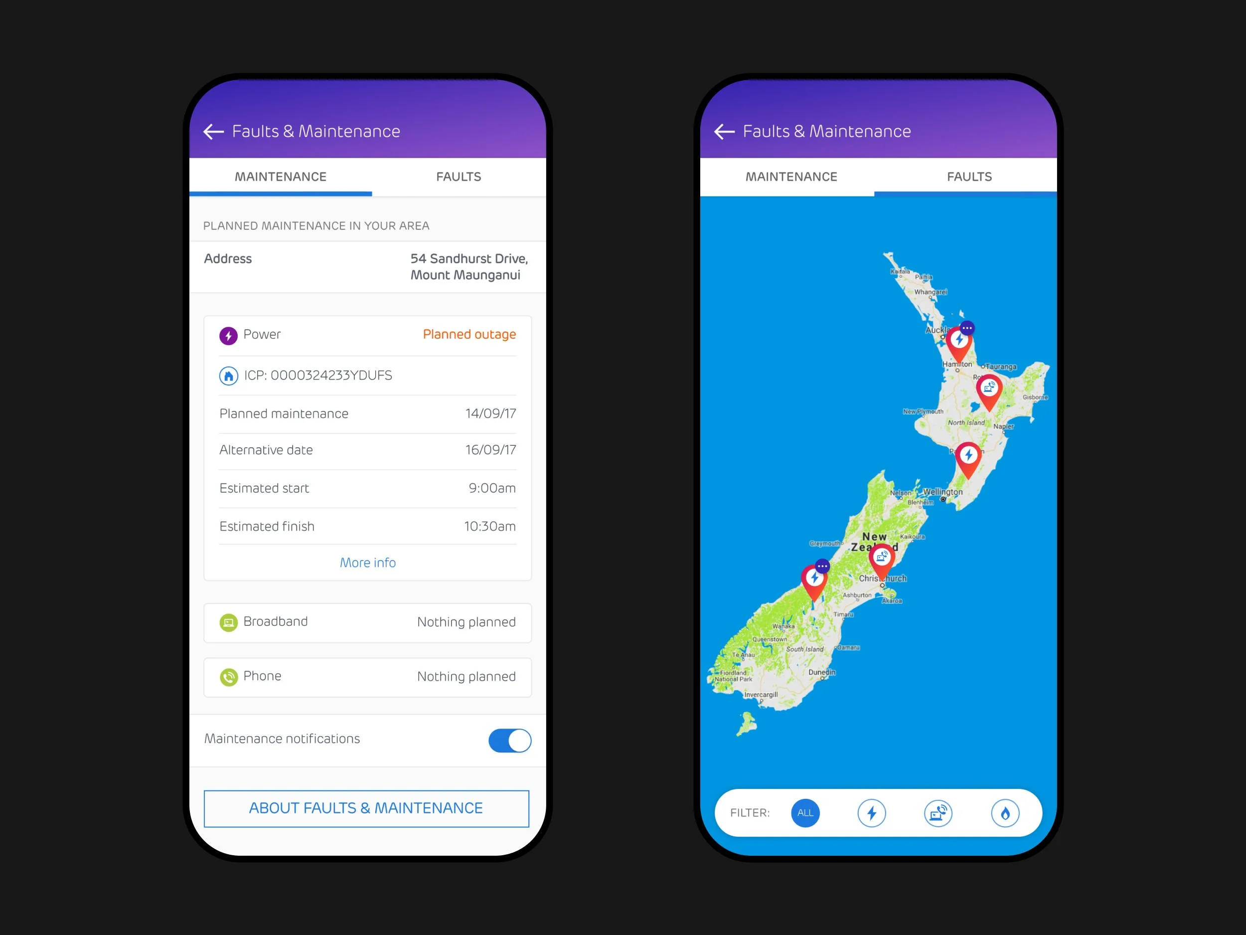 Once the MVP of the application was defined and delivered to the development partner, two other key pain points for customers were focused on. The first was for new customers onboarding to the company and the uncertainty around getting broadband installed. The second was around maintenance and faults of Trustpower’s services and if they might be affected.