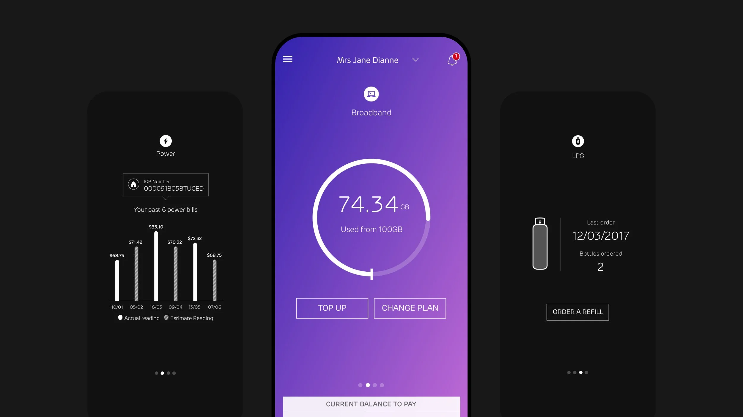 The experience of the app was designed around customers not having all services – power, gas and broadband with Trustpower. The framework ensured that whatever the combination of services a customer might have, the experience would be the same. This also allowed for future enhancement or addition of services such as onboarding and order tracking.